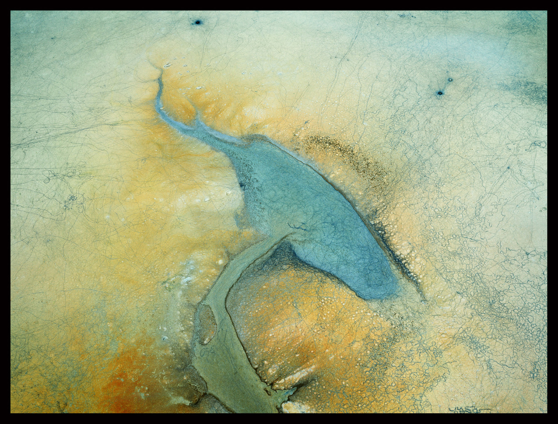 Edward Burtynsky, Tuz Gölleri #6, Kuşların Ayak İzi, Yarışlı Gölü, Burdur, Türkiye, 2022.